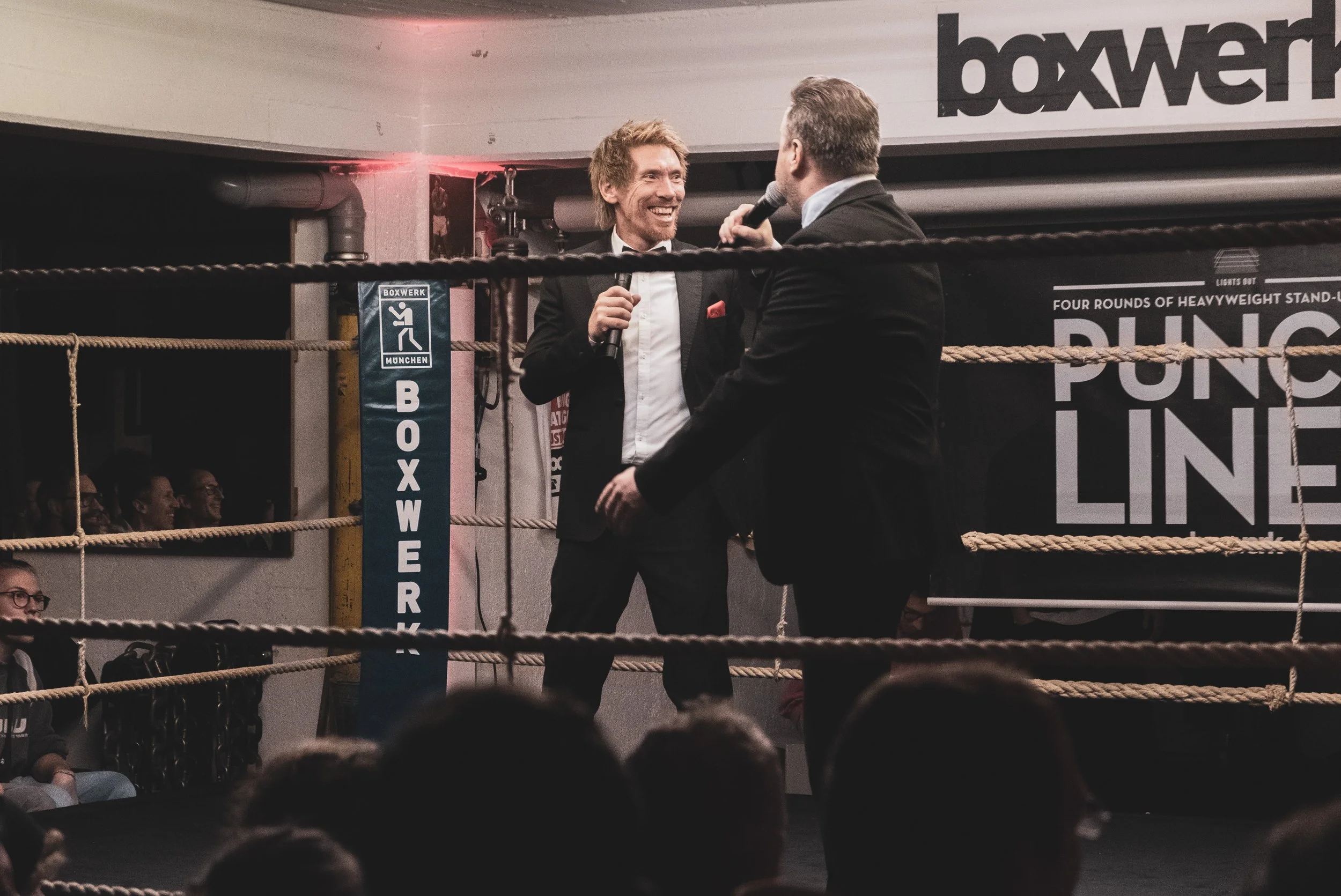 Zweimal im Jahr Stand-up-Show im Münchner Boxwerk. 150-200 zahlende Gäste, deutschlandweit kuratiertes Line-up. Ein besonderes Format, eine einzigartige Atmosphäre, das derbe Comedy und Boxen zusammenbringt. Ohne Competition und Wettbewerb.